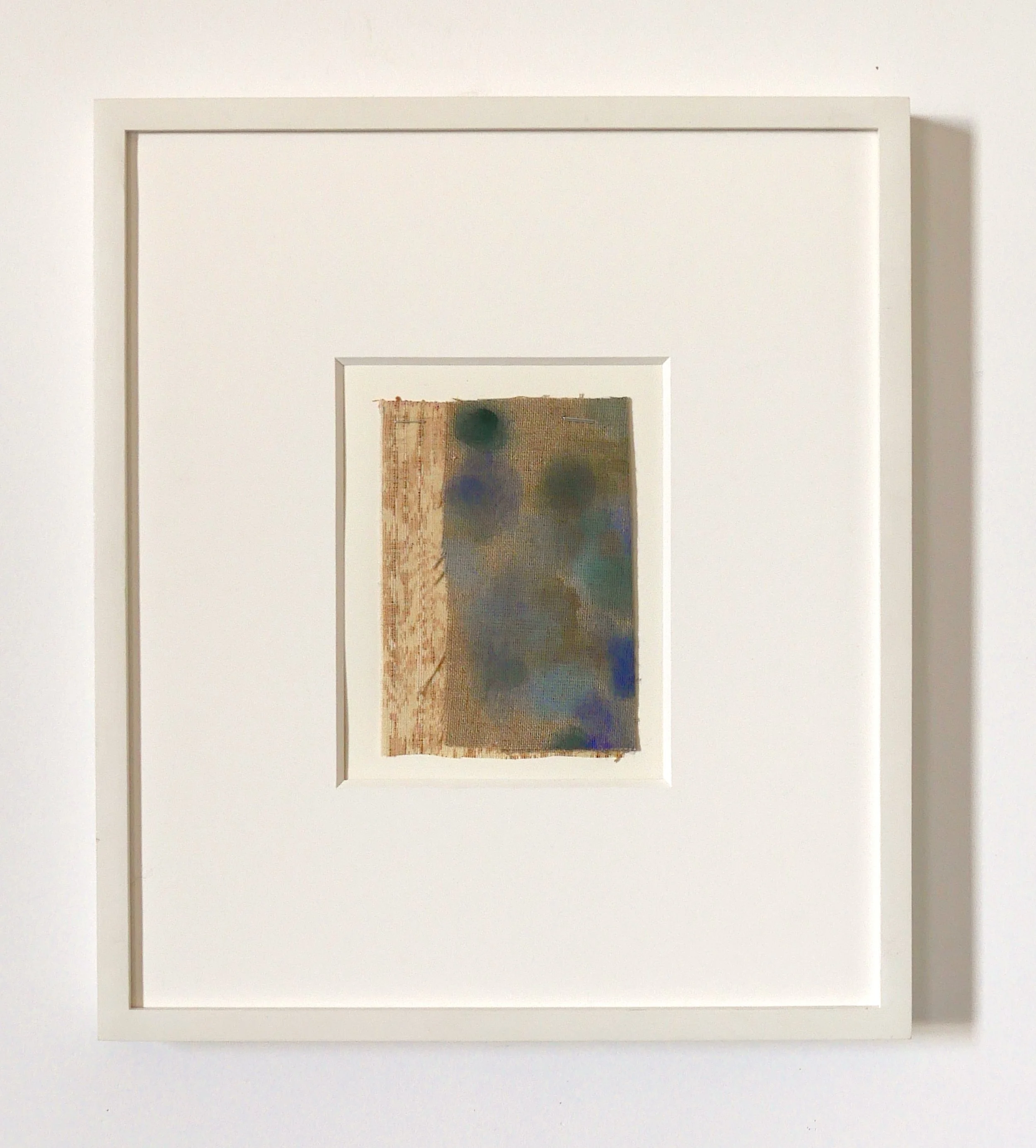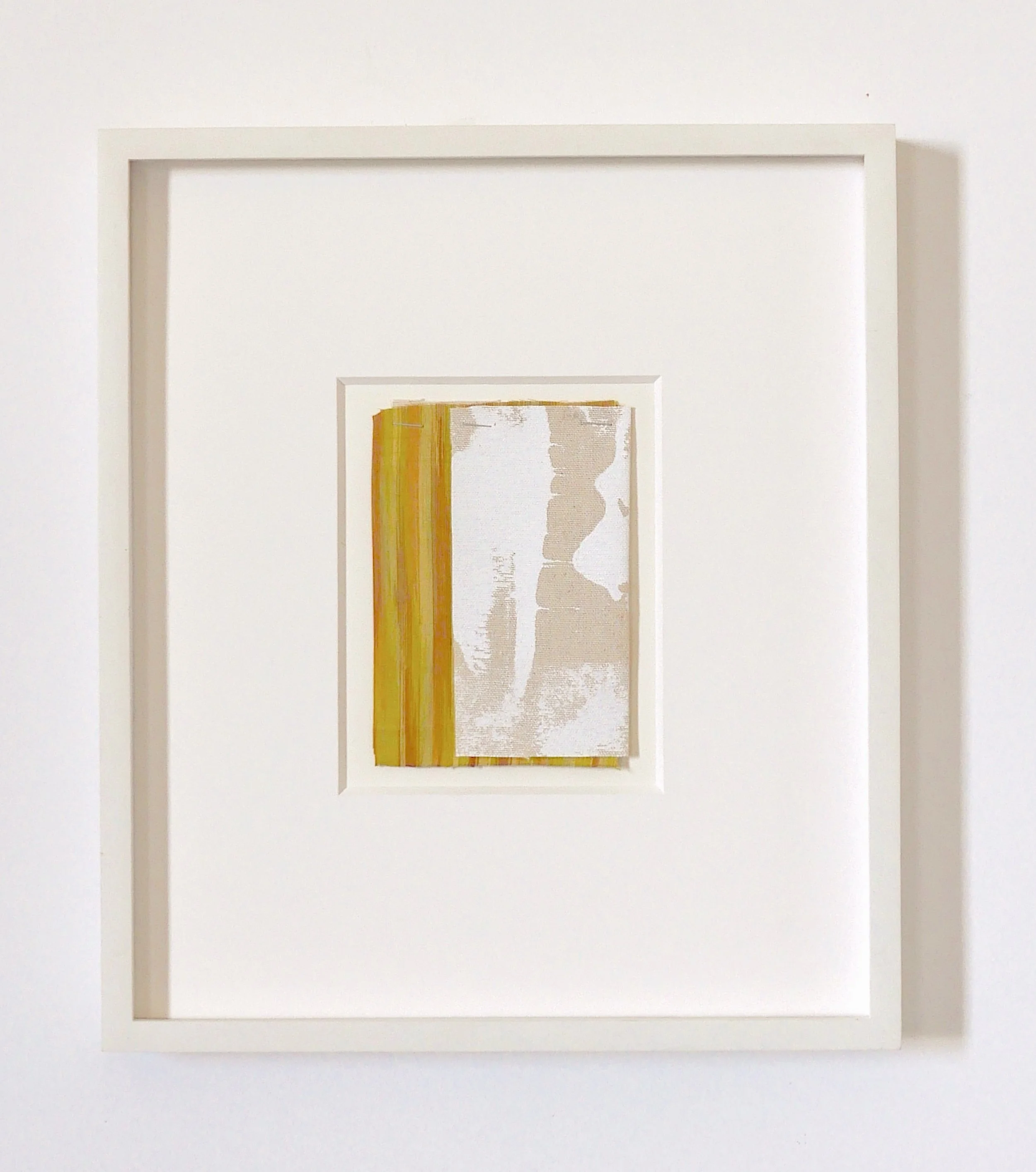View fullsize   Untitled, 2025  textile fragment, paint on card (framed)